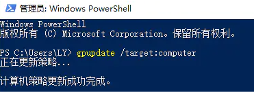 1)、管理员运行cmd输入gpupdate /target:computer,是修改后的策略生效。